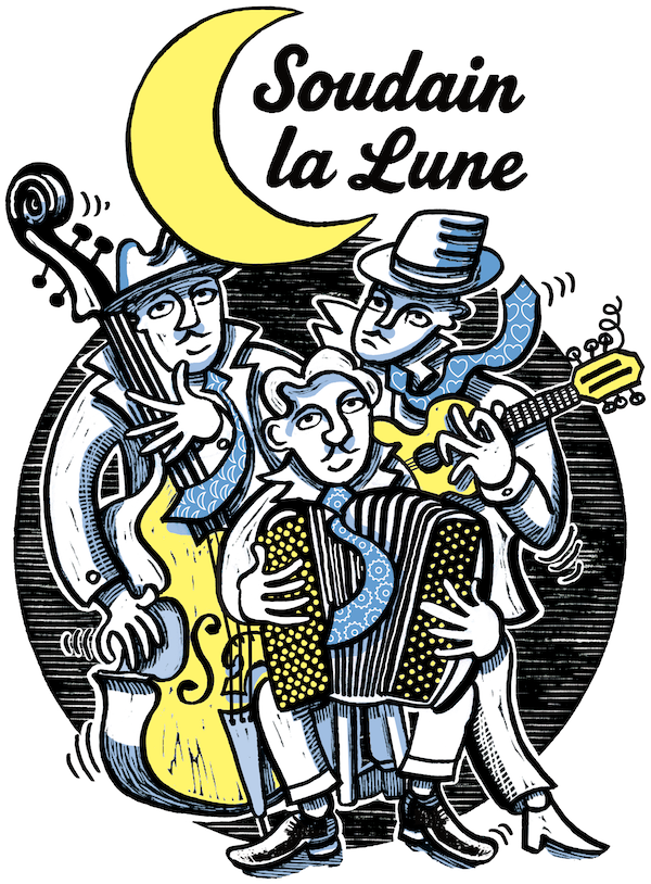 C’était par une nuit claire et glacée… Les trois amis, de retour d’un concert, se dirent que vraiment cela avait été une bien belle soirée. En faisant une pause sur la longue route qui traversait la grande forêt, ils repensaient aux belles mélodies de Django Reinhardt, Richard Galliano, Jo Privat, Alvaro Carrillo, aux chansons d’Yves Montand, d’Henri Salvador, de Claude Nougaro et Serge Gainsbourg, à ces boléros, tangos et bossas qui avaient réchauffé l’auditoire… Oui, il fallait prolonger ce plaisir de jouer sur scène devant des spectateurs enthousiastes, découvrir d’autres morceaux, enrichir leur répertoire et même proposer leurs compositions !
